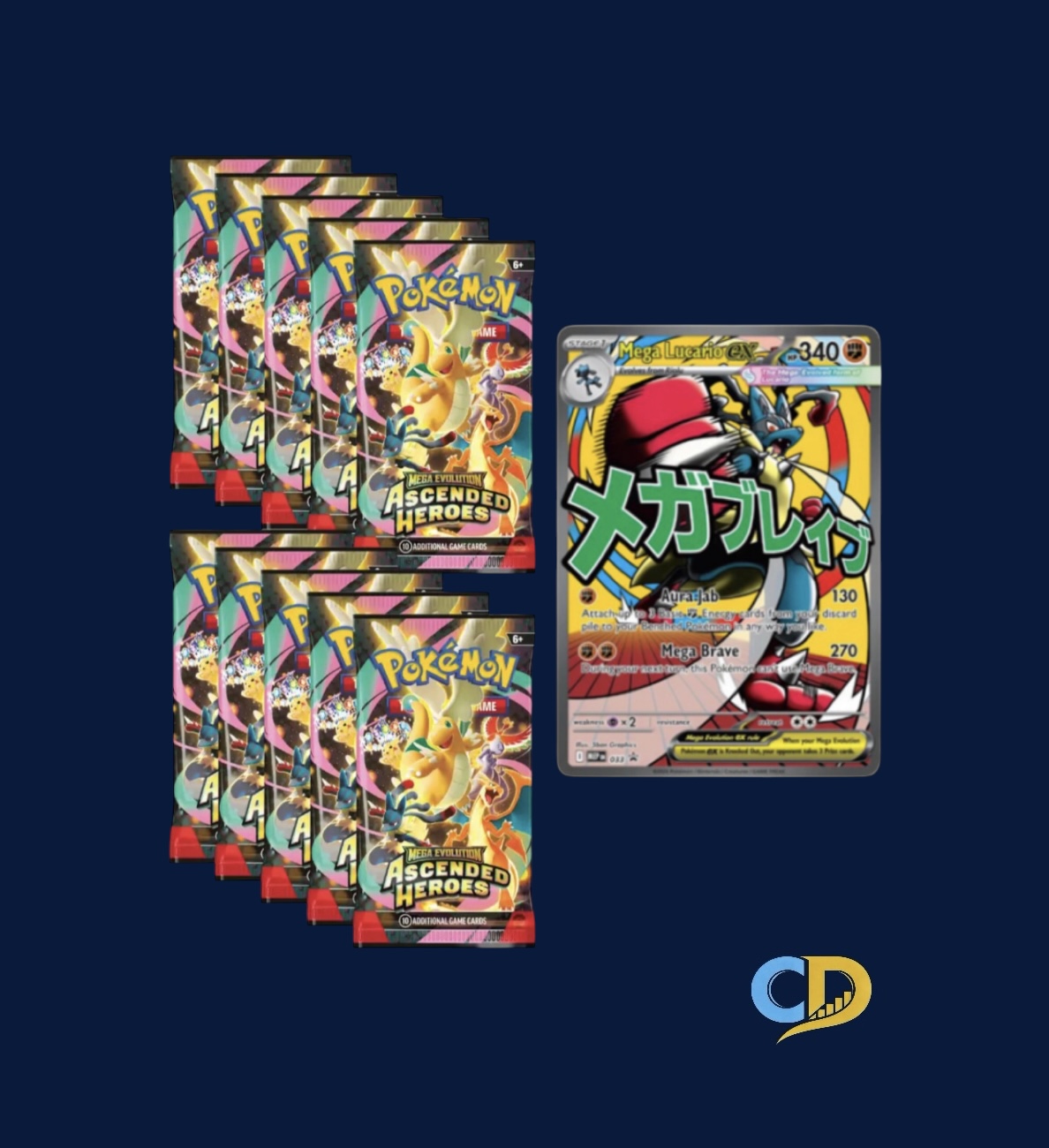 - Contains 10 Pokémon TCG: Mega Evolution—Ascended Heroes booster packs. (Each booster pack contains 10 game cards, 1 Basic Energy, and 1 Pokémon TCG Live code card. Cards vary by pack.)