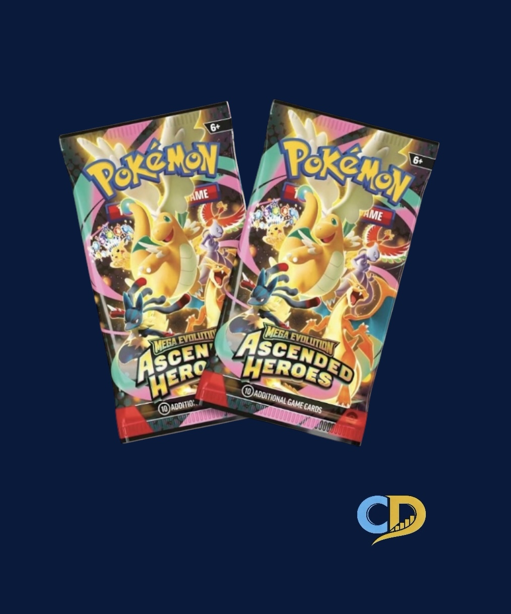 - Pokemon TCG Mega Evolution — Ascended Heroes Mini Tin. Each tin contains 2 booster packs and 1 art card. Factory sealed. Randomised tins.