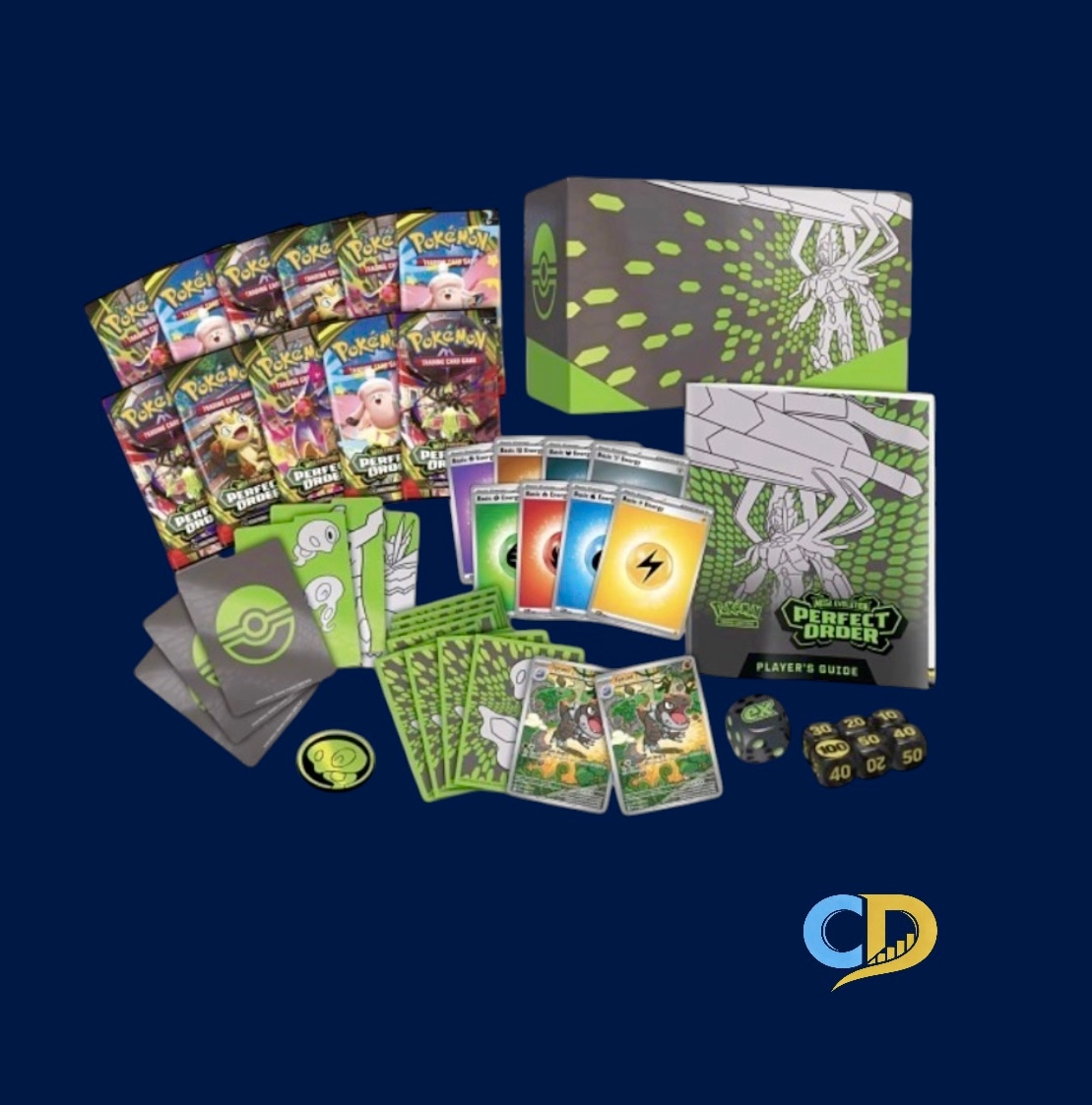 - Includes a player’s guide to the Mega Evolution— Perfect Order expansion, a collector’s box to hold everything, with 6 dividers to keep it organized, and a code card for Pokémon Trading Card Game Live.