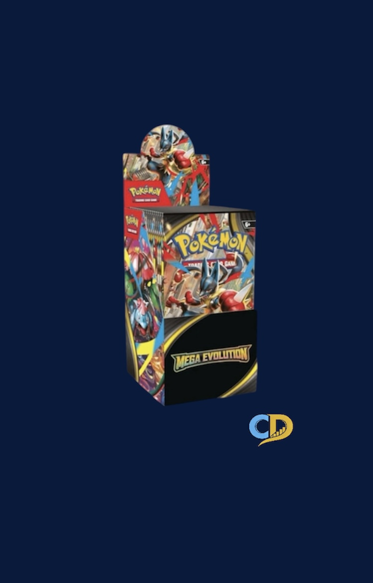 - The Mega Evolution Half Booster Box is built for volume without excess. With 18 packs in one compact box, it’s an efficient way to open deeper into the set, chase key cards, and grow a collection quickly - without going all-in on a full booster box.