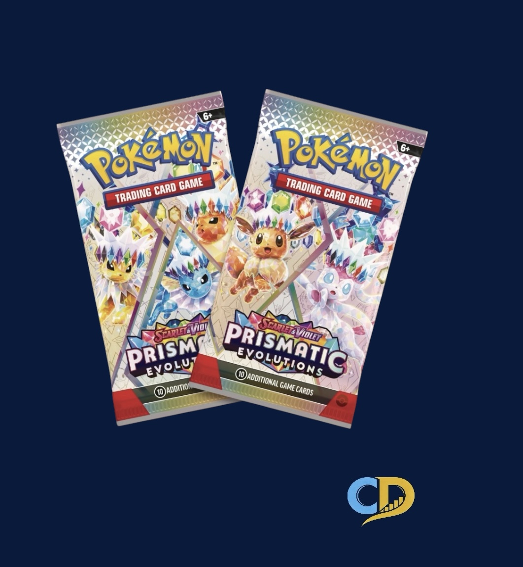 - Pokemon TCG Scarlet and Violet — Prismatic Evolutions Mini Tin. Each tin contains 2 booster packs and 1 art card. Factory sealed. Random Tins.